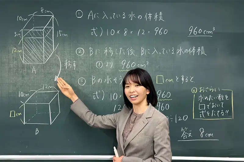 算数ではさまざまな公式がありますが、公式をただ覚えるだけではなく、原理や本来の意味を理解してもらうようにしています。そうすることによって、公式を忘れることはありませんし、応用問題にも対応できる力が育成されます。