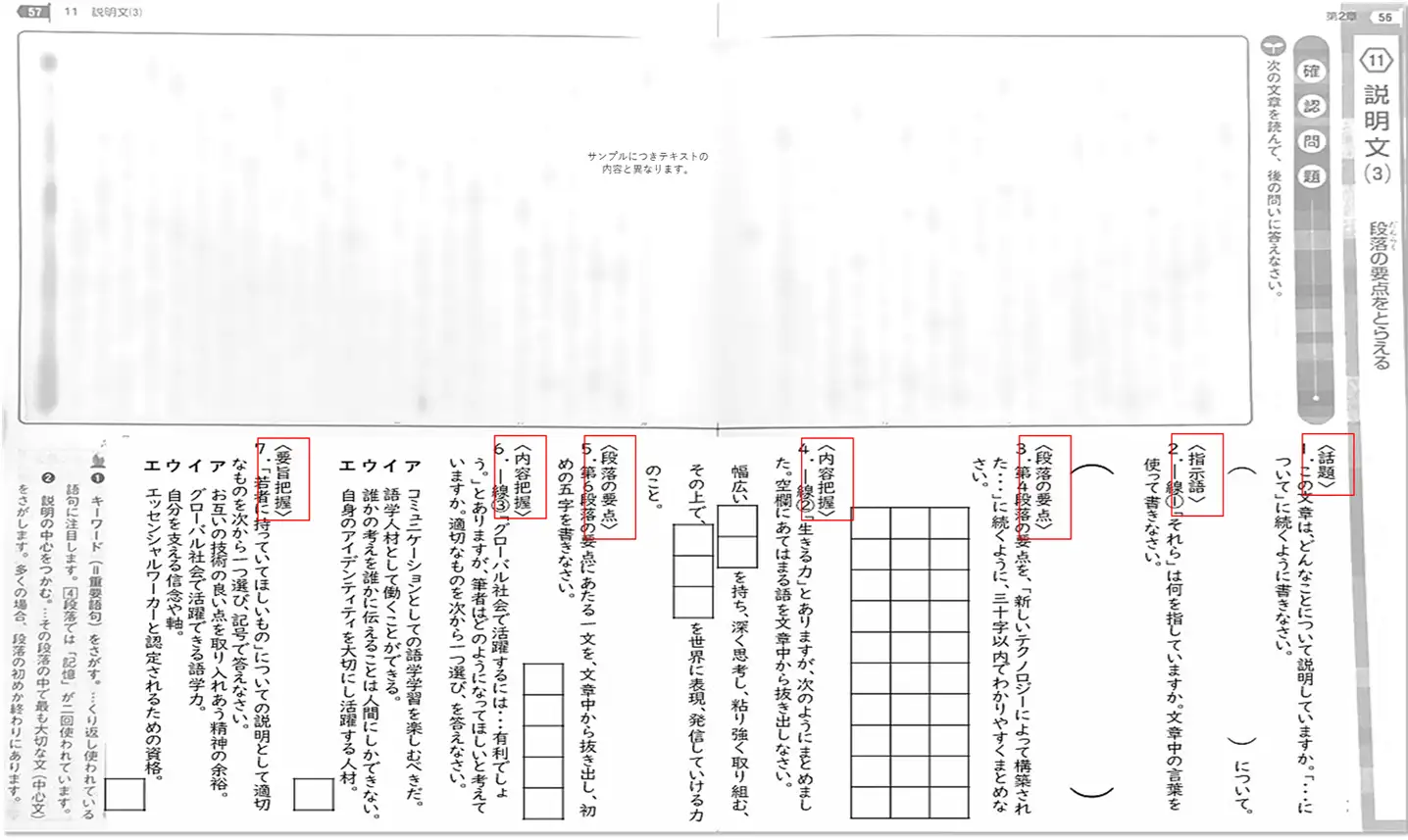 国語における目標は、多様な文章や表現に触れて絶対的な読書量を増やし、読解の基礎を築くことです。思考や表現は十分なインプットがあって初めて成立するため、付録部分まで含め徹底的に触れる文字数を確保します。