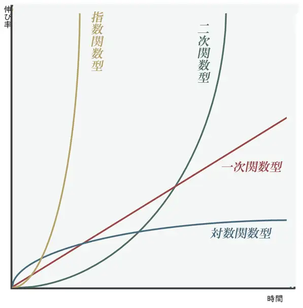 実際に大きく伸びた生徒は、まず基礎の型を徹底反復し、特に耳から得た情報を文字化・映像化する訓練を積み重ねていました。その成長曲線は一次関数型もあれば指数関数型もあり様々です。