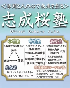 浦和に新しくできました学習塾「志成桜塾(しせいさくらじゅく)」です。 新しくホームページができました。 これからどんどんお知らせを更新してまいります。 今後ともよろしくお願いいたします